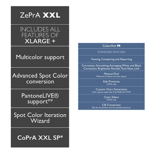 • ZePrA uses spectral data and spot color libraries and can optimize colors based on custom conversions.
